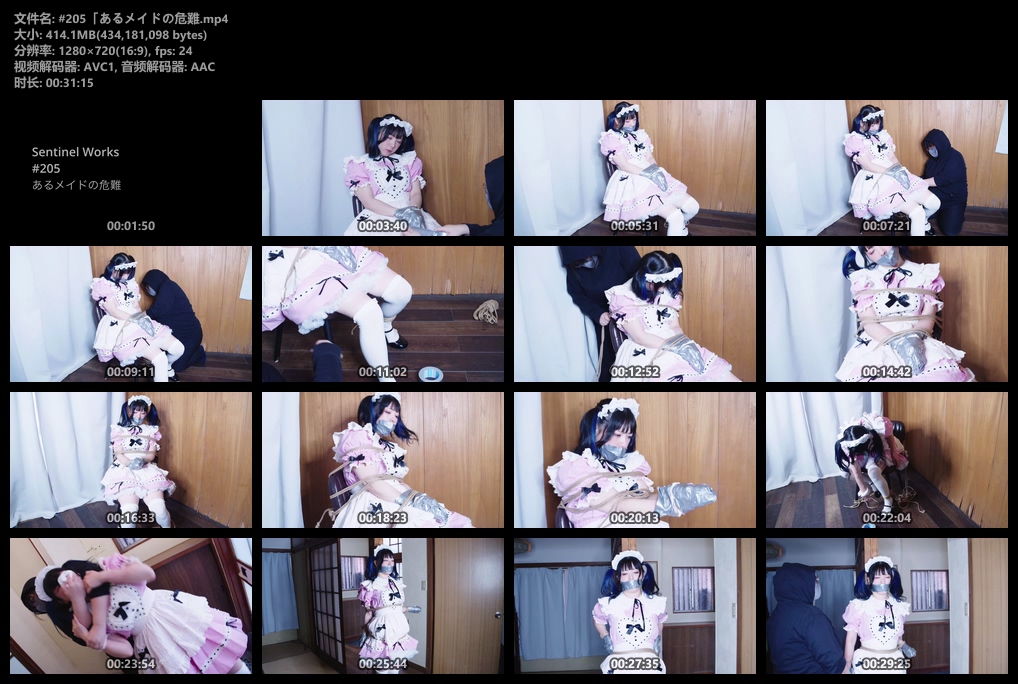 一位可爱的女佣在家中遭到袭击,她的双手和嘴巴被胶带封住,身体和双腿也被绳子绑在椅子上。